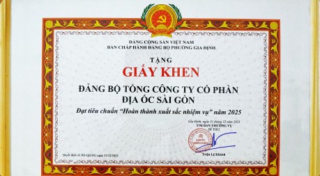 Ngày 10 tháng 01 năm 2026, Đảng bộ Tổng Công ty Cổ phần Địa ốc Sài Gòn vinh dự được Đảng bộ phường Gia Định trao tặng Giấy khen “Hoàn thành xuất sắc nhiệm vụ”[...]